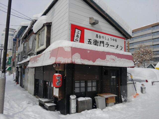 2020年02月19日 三角山 五衛門ラーメン こちらも気になっていたお店。「三角山 五衛門ラーメン」屋台のようなカウンターだけの小さなお店。塩や味噌もありましたが、看板の屋台のしょうゆ味に誘われ・・・”しょうゆラーメン”(700円)あっさりしたスープで、懐かしさを感じる優しい味。春菊や細く切ったメンマと函館にはないラーメン。次回は、”メンマトッピング&じゃこめし”でいただきたい。2泊3日の札幌旅でした。♪三角山 五衛門ラーメン 札幌市中央区南2条西9丁目