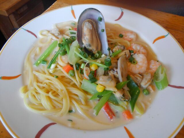 2020年02月20日 RESTAURANT Pino 数週間前ですが、ランチで行ってきました。「RESTAURANT Pino」単品で”サラダ”(250円)を注文。かなりのボリュームなので二人で食べてもちょうどいい。ブルーベリードレッシングも美味しい^^”ウニと小海老のたらこクリームスパゲッティ”見た目よりもあっさりとしたクリームソース。タラコの塩味とウニの香りがたまりませんねぇ~野菜もたくさん入っていて、お腹もいっぱいになりました。母注文の”海の幸のみそ風味クリームスパゲッティ”こちらのスパゲッティは母のお気に入りです。またプチディナーも食べたいなぁ~♪RESTAURANT Pino 亀田郡七飯町字峠下11-9